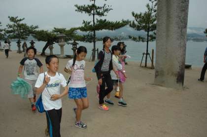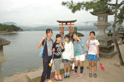 宮島散策を終える頃には,雨もすっかり止み青空が見えてきました。厳島神社の大鳥居ともお別れしました。