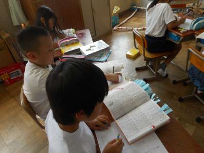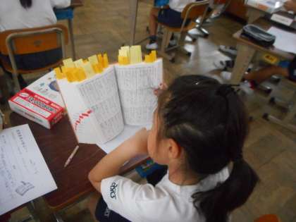 今日の昼学は,国語辞典を使って行いました。
