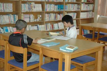 毎朝,朝読書をしています。金曜日は図書室で行います。静かに読書に勤しんでいます。