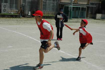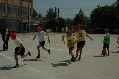 体育の時間に取り組んでいた,リレーは,この時間が最後となりました。何度もバトンリレーを練習したので,とても上手にできるようになりました。