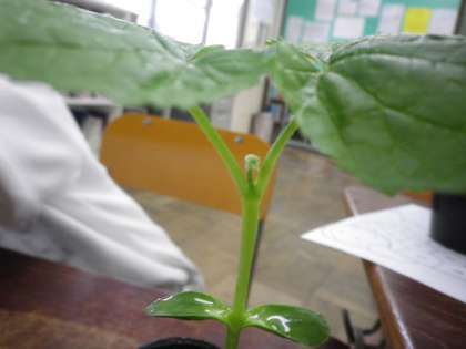 2回目の観察をしました。「本葉が大きくなった」「緑が濃くなった」といろいろな発見をしていました。