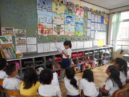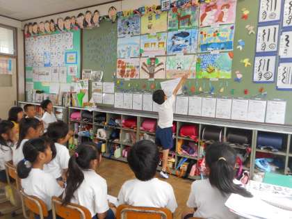 今日の図工では,前回描いた絵の発表会を行いました。