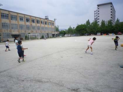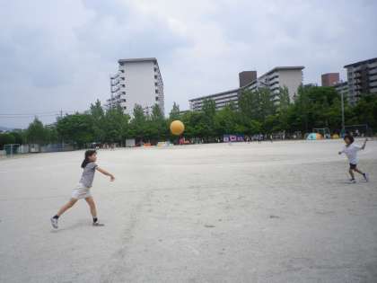 今日は「王様ドッジ」をしました。どちらの王様も当てられず,いい勝負でした。