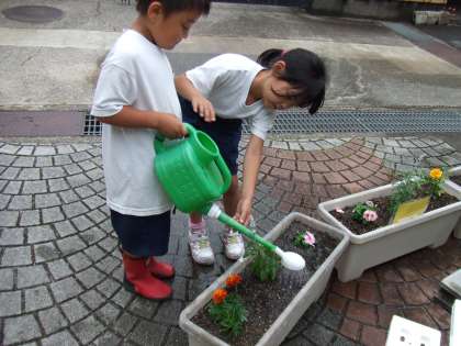 植えた後は,お水をたっぷりあげました。明日から,水やりをがんばろう!