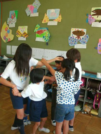 今年初めてのなかよし集会がありました。6年生のリーダーを中心に自己紹介をしたりゲームをしたりして,仲良くなりました。