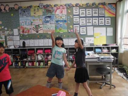 今日の帰りの会では「にじ」を歌いました。