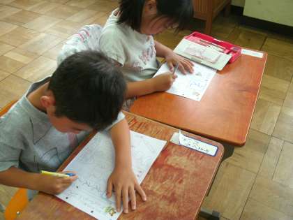 今日のひらがなは「え」でした。独特な形の文字ですが,しっかりお手本を見てかけていました。