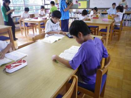 図書委員の辞書の早引き大会に参加しました。3分間集中して取り組んでいました。