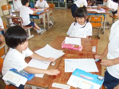 生活科の授業で次の学校たんけんの計画を立てました。今度の学校たんけんでは,いろいろな教職員の方に質問をするので,どんな質問をしたいか,行先ごとにグループを作って話し合いました。