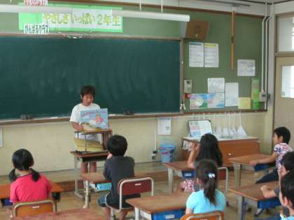 今週は,あじさい読書週間ということで図書委員会の5年生が読み聞かせにきてくれました。紙芝居を読んでもらいました。