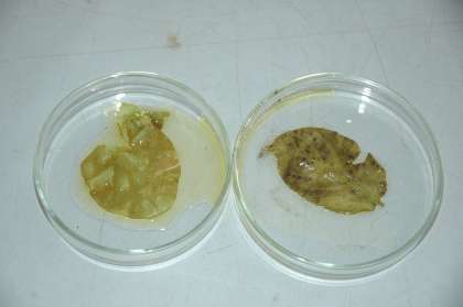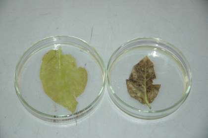 1時間目と6時間目に理科をしました。一日中日光に当てた葉と,当てなかった葉とをくらべました。しっかりとヨウ素デンプン反応の違いが出ました。しっかりと学習できました。