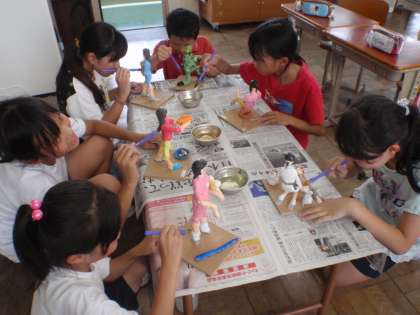粘土で作った「12年後の私」にニスを塗りました。作品が輝いて見えてきました。