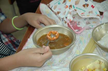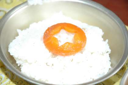 給食の「ハッシュドビーフ」に幸せニンジンが入っていました。星の形をしていました。くり抜いた外枠はありましたが,星形のニンジンは見つかりませんでした。