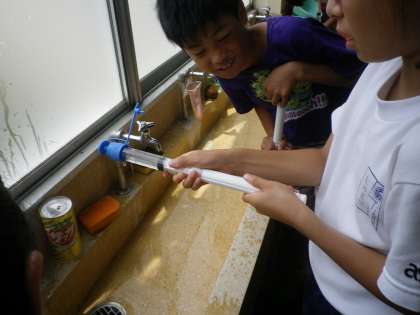 「水は空気のようにおしちぢめられるのだろうか」ということについて実験をしました。
