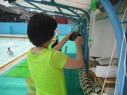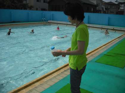 いいお天気に恵まれ,高学年の子どもたちは気持ちよさそうに水泳学習をしていましたが,プールサイドは炎天下。