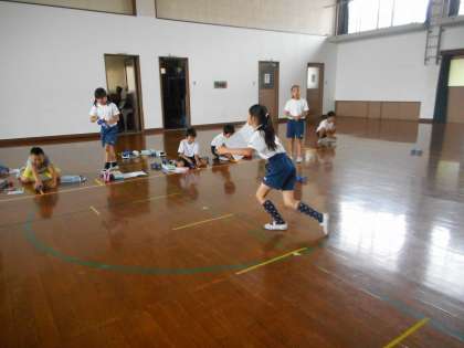 理科の学習では,ゴムのはたらきを調べる実験を行いました。