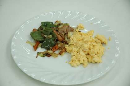 調理実習で作った,スクランブルエッグと野菜炒めを食べました。野菜は柔らかく,タマゴもふんわり調理することができました。