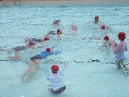 6年生だけで水泳学習をしました。広々と使い,豪快に泳ぎました。気温も上昇して気分良く泳ぎました。