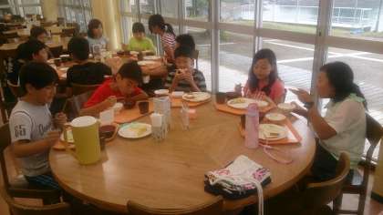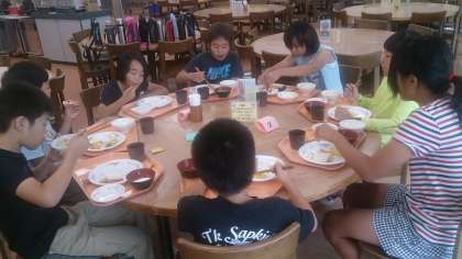 朝の集いを終えて,食堂で朝食をとりました。