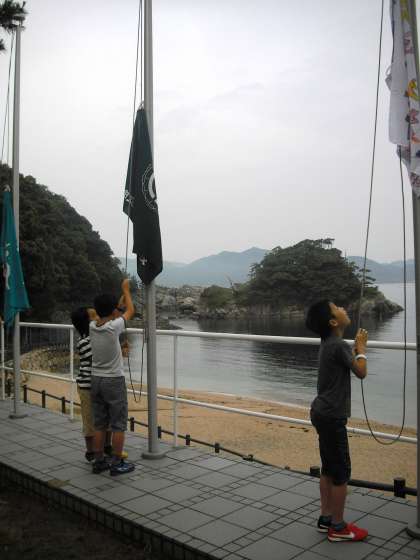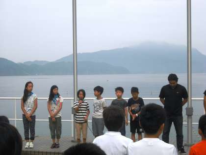 3日目の朝,お天気も良く,外で朝の集いを行いました。
