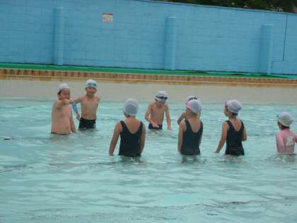 ぽつぽつと雨がちらついていたのですが,水温も気温も大丈夫だったのでプール学習をしました。だるまうき,大の字うき,ふしうきなどを練習しました。力を抜いてぷっかりと浮くことができる子が多かったです。