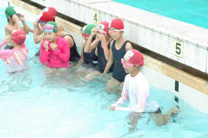 5年生と合同の水泳学習を再開しました。人数が増えたので賑やかになりました。水温もグッと上がってきたので,気持ちよく泳ぐことができました。