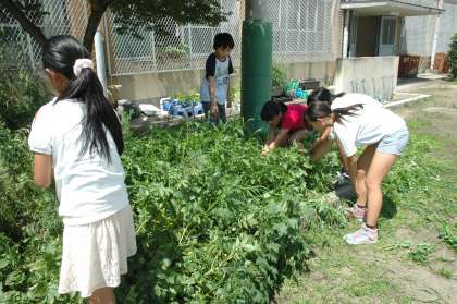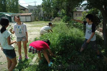 ジャガイモを育てていた畑が雑草でいっぱいになっていました。力を合わせて掃除をしました。たくさん取りましたがまだまだいっぱいあります。来週もがんばります。