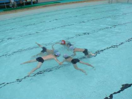 暑い一日で絶好のプール日和でした。今日も浮く練習を中心にがんばりました。大の字うきを練習した後,友だちと手をつないで大の字うきをしました。プールに大きな花が咲きました。