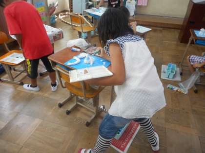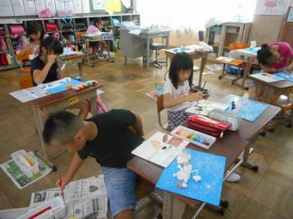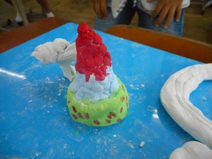 先週作った紙粘土の作品に,