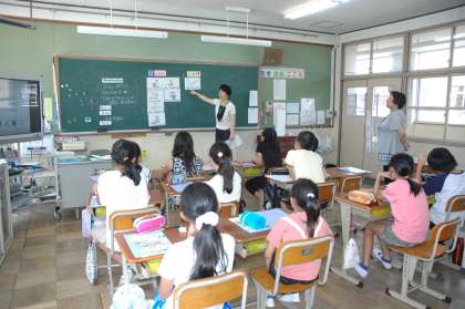 ジェスチャーも大切:英語活動(6年生)