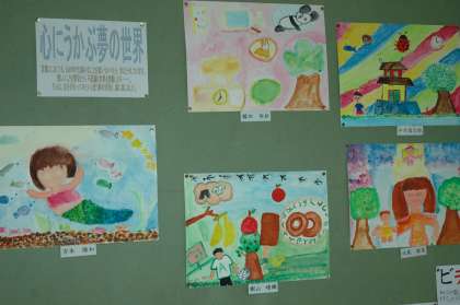 「心に浮かぶ夢の世界」の絵を,教室の掲示板に展示しました。素敵な夢の世界が広がっています。懇談会に来られたときなどに見てください。