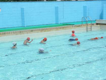 梅雨明けの空の下で気持ち良くプールに入ることができました。水慣れの後はだるま浮きやふし浮き等の練習をしましたが,手慣れた感じで力を抜いて浮くことができていました。