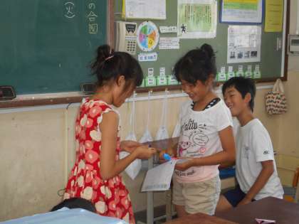 教室の中に折り紙で作ったカッパを10こ隠し,