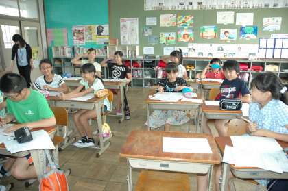「社会を明るくする運動」の作文に取り組んでいます。身の回りのさまざまなテーマから社会を見直し作文にしています。