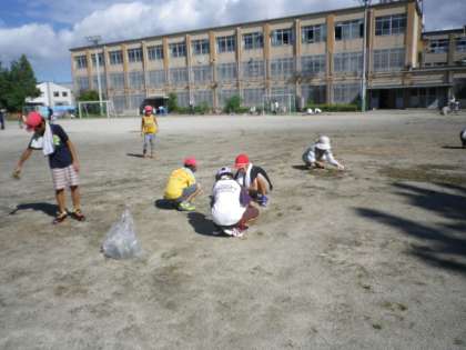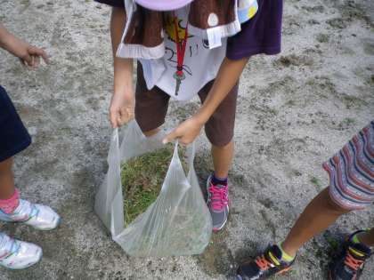 雨上がりの校庭は,草が引きやすく,たくさんの草を引くことができました。よく頑張りました。
