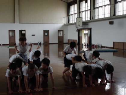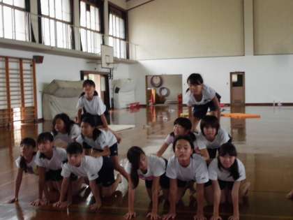今日はクイックピラミッドの練習です。うまくはやく乗っていくことが難しいのですが,降りるのも難しいです。