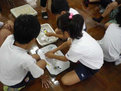 夏休みが明けて初めての身体計測です。けがの手当ての仕方や救急箱に入れておくとよいものについても学習しました