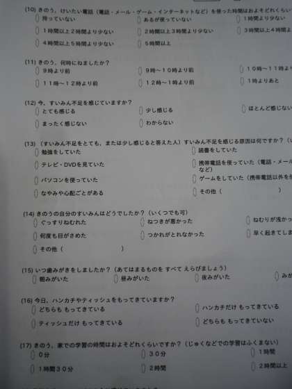身体計測の後は,健康アンケートに取り組みました。