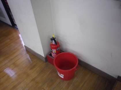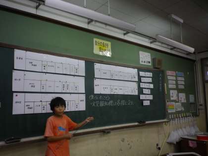 校内の防火設備をまとめた地図をもとに気づいたことを発表しました。家庭科室にある防火設備も調べに行きました。