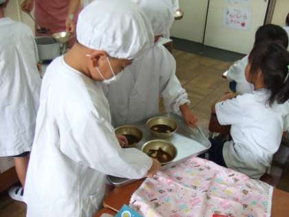 給食の準備も少しずつ早くできるようになってきました。