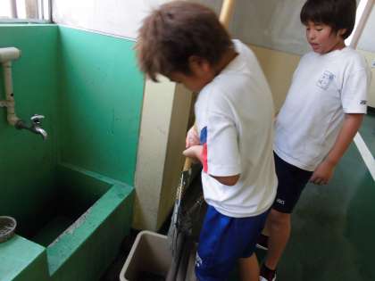 モップをしっかりしぼるのもなかなか大変です。コツと力がいります。