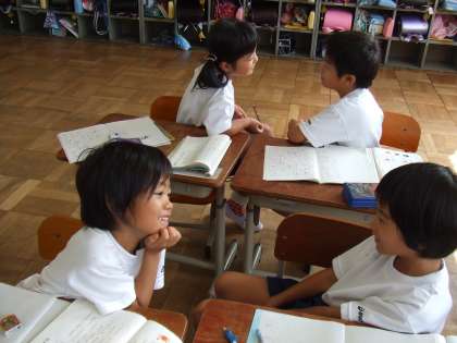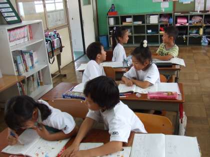 国語の「ひらがなあつまれ」の学習で,しりとりをしました。となりの人と楽しく活動できました。