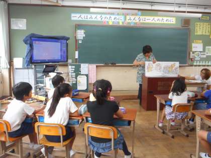 今日の英語活動では新しい英語の絵本を読んでもらい,