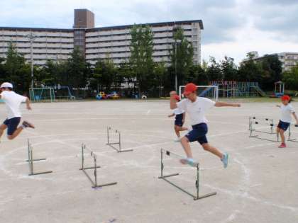 運動会競技のハードル走の練習をしました。久しぶりのハードル走でしたが,何度も走っているうちにリズム良く走ることができました。