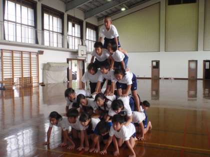 運動場が雨でぬかるんでいるために体育館で組体操の練習をしました。演技の順番や技はできてきました。これからは気持ちを盛り上げましょう。