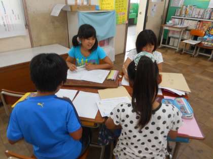 グループで新聞作りをしています。