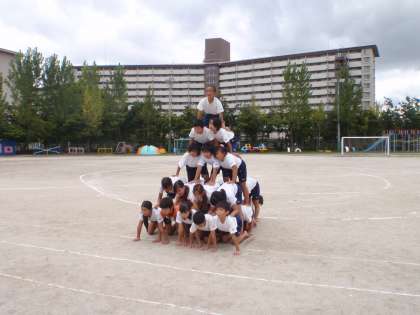 組体操開始前のアナウンスを入れて練習をしました。これで本番通りの内容で練習できました。明日は練習通りできれば素晴らしい演技を見せることができます。