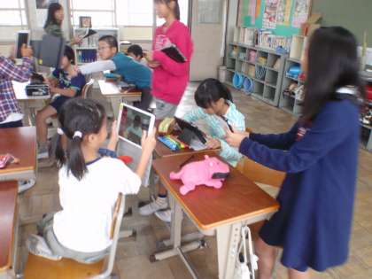 タブレット型情報端末(iPad)を使いました。今回は動画を撮影しました。ビデオカメラとはちょっと違った持ち方をしなければ安定した映像が撮れません。しかしすぐに慣れていました。次は自己紹介ビデオを作ります。