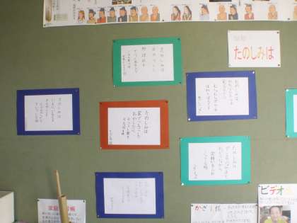 国語で短歌を学習しました。「たのしみは」で始まる短歌を作りました。一人一人の楽しみがよく分かる短歌が並びました。教室の掲示板に掲示しています。