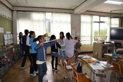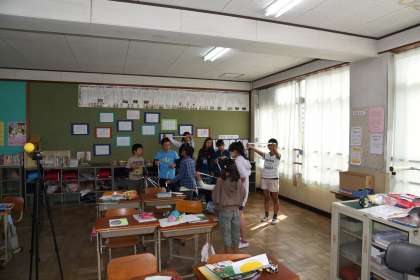 理科の学習で「太陽と月」を進めています。太陽と月,そして地球の3つの位置関係で見える形が決まることを教室で学習しました。